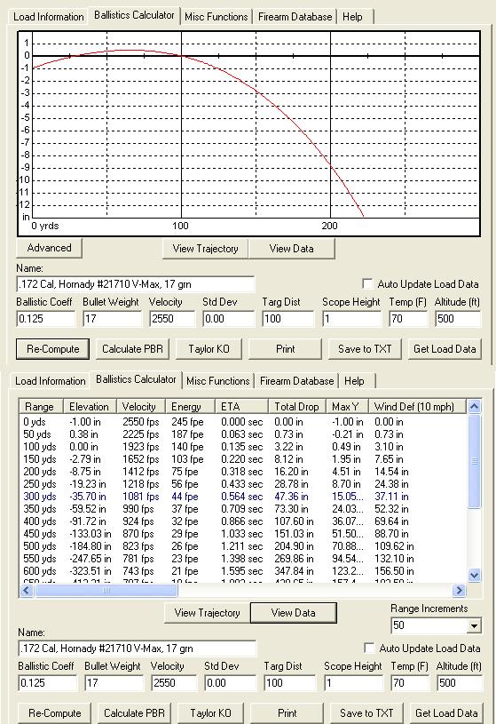 Hay una idea subjetiva de que el .17 HMR tiene una trayectoria casi plana pero, como se ve en las gráficas, tampoco es tan cierto como se cree. Es más plana que un .22, por supuesto, pero no es la bomba.