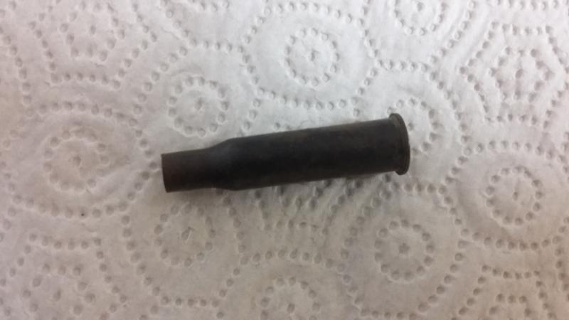 Ahí va una foto del que te digo encontrado en Brunete. Su aspecto es el mismo que el de tu vaina. Sin duda la que encontraste tuvo su bala durante algún tiempo y se desprendió. El cuello es lo que antes falla en las vainas. Tengo un montón de balas del 7x57 antiguas con el cuello rajado