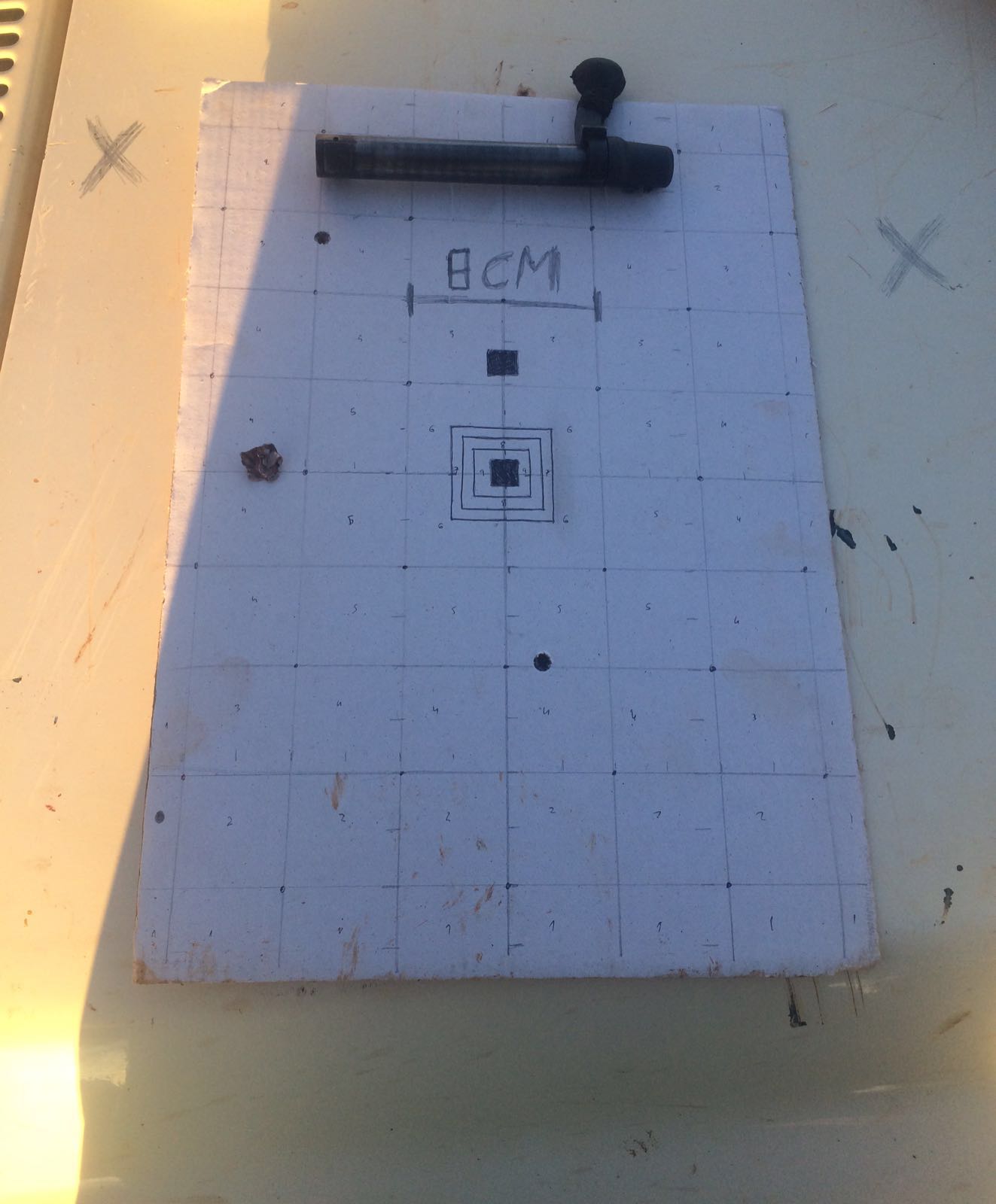 Muy buenos dias, acabo de presentarme como nuevo usuario del foro, y una de las razones aparte de mi pasion a las armas , la caza y todo lo relacionado, es que tengo problemas con mi rifle. Nose si alguien le habra pasado algo similar pero esque me quebro la cabeza. Lo compre nuevo hace 2 años y ahora tendra unos 400tiros a las espaldas, un remington seven compact con cañon de 46cm en calibre 7mm08rem. Poniendolo a tiro este año, despues de abatir en descaste la temporada pasada unas 200reses, me veo con el problema de la agrupacion pesima que hace el rifle. Haber si alguien me hecha un cable porque estoy muy quemado...nunca le dado ningun calenton, y ya he probado 2 visores con diferentes monturas, bases bien apretadas y sigue cada tiro por su lado. Adjunto la ultima tirada 4 tiros a 100m. Espero vuestra voz de la experiencia... Saludos a todo el foro