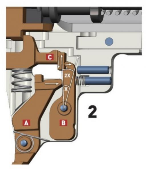 El recorrido por inercia es el movimiento del gatillo después de que la aguja percutora haya sido desplazada por