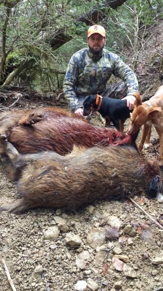 ¿Con dos cargadores o con uno?, Porque en un cortafuegos que te saltan 5 cochinos de vez, por muy hábil que sea tu Señor padre, dudo mucho que de tiempo a un cambio de cargador. A no se ser que se le parasen , que también lo he visto.