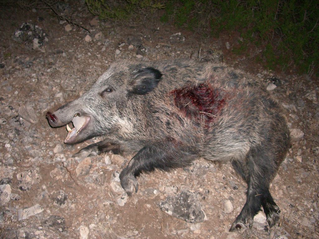 Esta claro que la colocación del tiro es fundamental, para muestra las fotos que has puesto, el primer jabalí, el que corrió 100 metros tiene el tiro en el jamón trasero, y el ultimo que no se movio ni tres metros tiene el tiro perfecto.