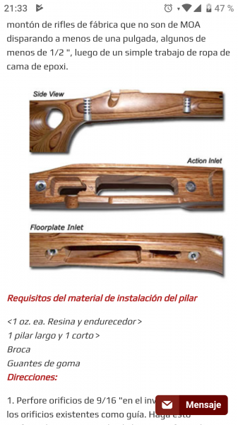 Extractor escribió:A mi entender haces bien. Entre 3 y 3,5 para la madera y cuando hay pilares entre 4 y 4,5. Siempre estás a tiempo de probar y subir y al menos sabes que no haces una pifia de muy mal arreglo. Yo creo que serán métricos. Si encuentras cabezas planas allen o torx (evidentemente las hay), te quitas un problema mientras tengas el rifle y puedes hacer modificaciones cuando quieras sin sufrir por matar la cabeza. Yo ahora no le pondría fijatornillos porque estás en período digamos de "prueba". Si más adelante encuentras los pares adecuados, no está de más. Además, yo lo he puesto precisamente en esos tornillos y con una buena llave los aflojas sin problemas.