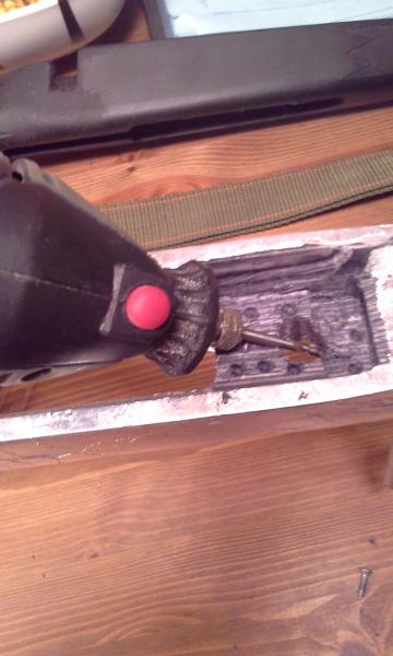 Con la Dremel o similar hacemos unos pequeños marcajes en la madera para que el pegamento adhiera mejor. El propio manguito lleva un moleteado exterior y si no nos coincidiese con una lima gruesa tambien se puede rayar un poco la superficie.