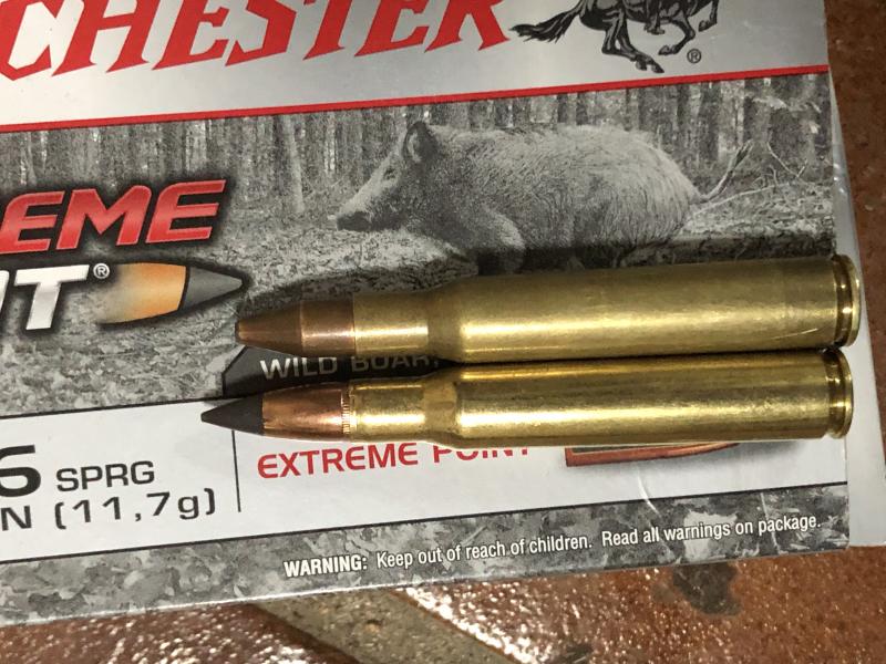 Ahora estoy a la espera de probar las winchester extremepoint de 180gr que tienen una pinta estupenda, pero parece que a los jabalíes se los ha tragado la tierra por mi zona.