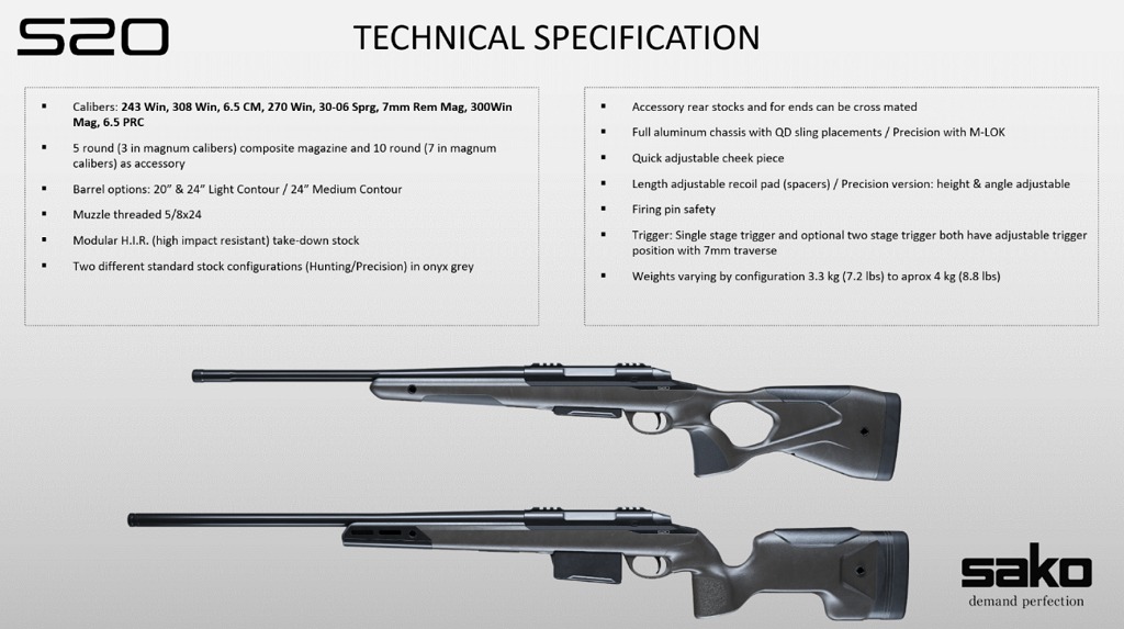 He visto varios vídeos en Youtube del Sako S20 pero no consigo ver las especificaciones técnicas como por ejemplo peso y tampoco he conseguido saber cual sería su precio de venta en España.