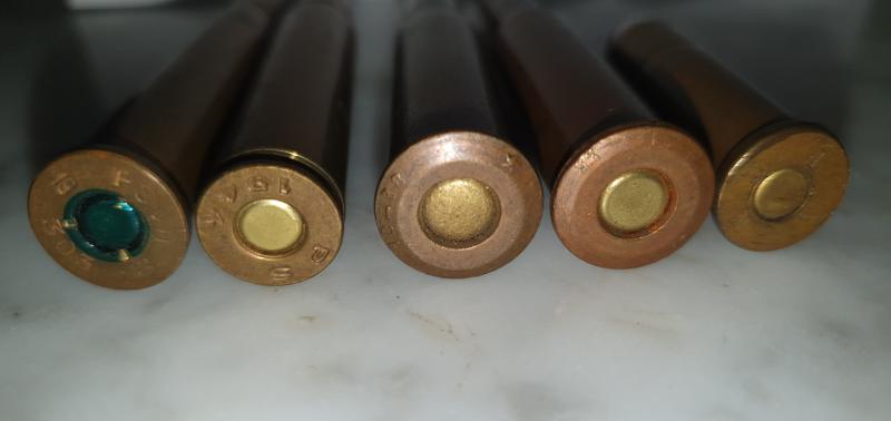 Hola compañeros, tengo estas balas de mi abuelo, y no se que calibre son ni en que rifles o fusiles se usaban, no se si esta bien poner aqui este tema o en armas militares o de guerra.