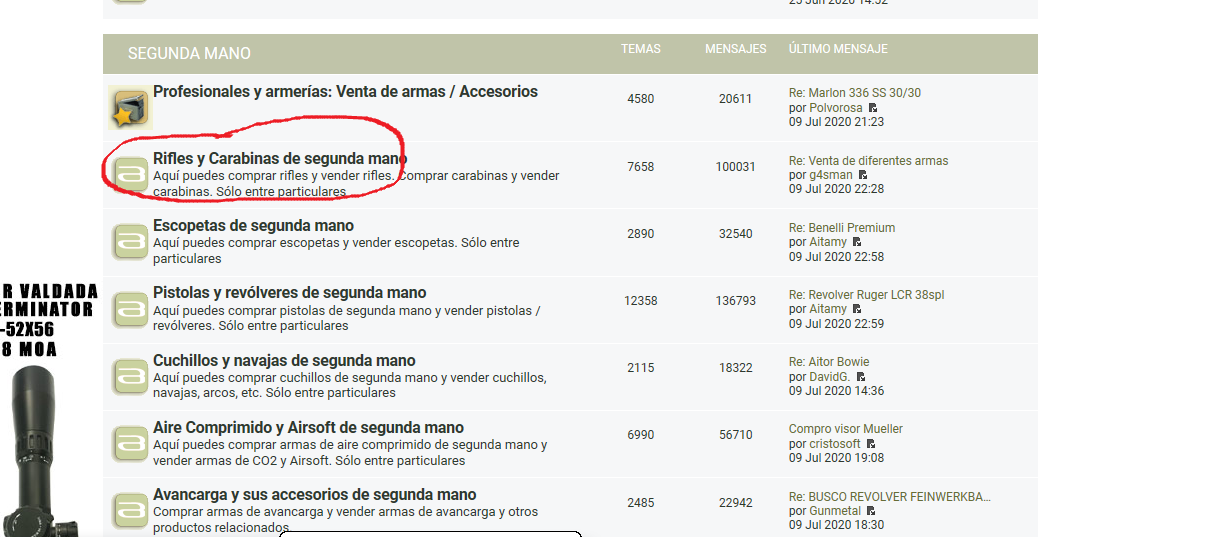 Y ya luego en esta sección, que esta abajo de todo, anuncias el rifle