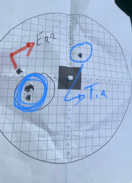 Buenas, para que te puedas hacer una idea mejor de cómo agrupa, sería interesante hacer la prueba con el máximo rigor que puedas (usar un banco, medir la distancia exacta, comprobar que no haga viento, etc) y no tengas prisa en tirar.