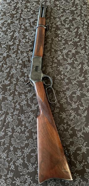 Modelo de Winchester al que parece ser que imita,desconozco cuando se fabrico. Es una versión muy rara ya que si cañon mide 35,5 cm, desconozco si se corto en su día. Mi suegro