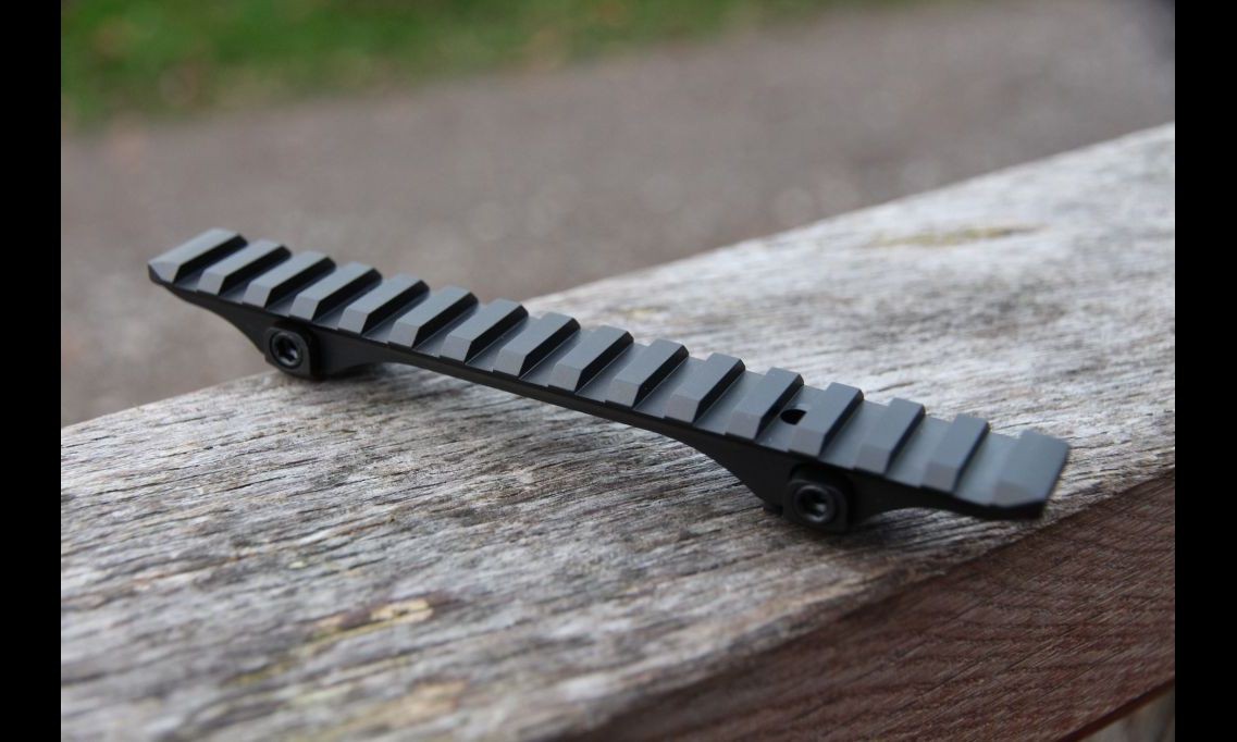 Creo que si tu rifle no piensas venderlo, esto es siempre en tu casa, lo mejor seria que te metan en la fresa unas monturas de carril picatinny les dan la forma adecuada como una funda de un diente, para que se entienda, las colocas encima pero encajando hasta donde te permita, de forma que las puedas atornillar a las originales, quedan fijas y hay quitar y poner unas desmontables no creo que te de ningun problema mas.