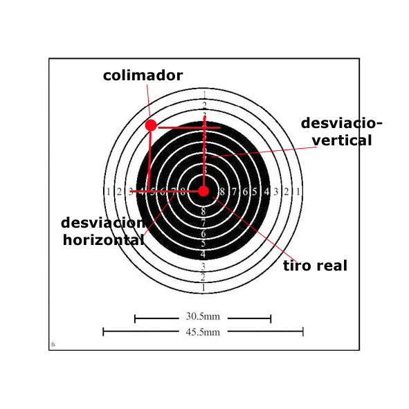 El colimador i ver donde marca el punto de impacto , evidentemente tendremos una desviación de mucha o poca distancia entre impactos lo que nos daría una referencia