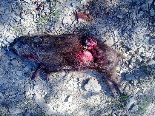 Personalmente, q he abierto cientos de jabalies, la bala q mas daño he visto hacer es un S&B de punta escalonada de 150 gr ,sencillamente impresionante.