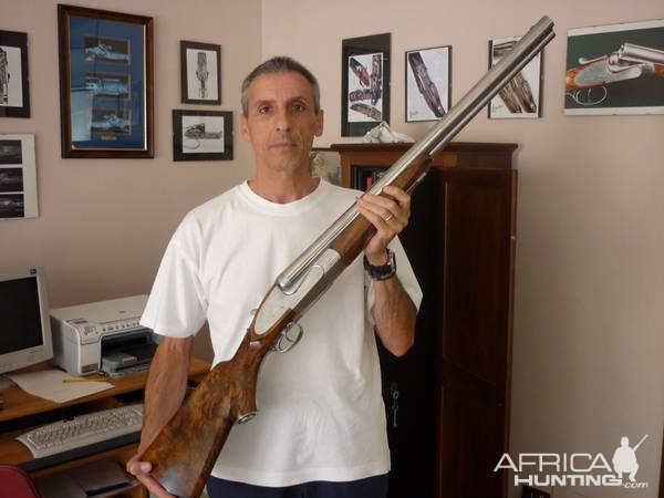 Marco Scaiola, a big bore fanatic from Italy, emailed me these pictures of this humongous double rifle to share on AH.