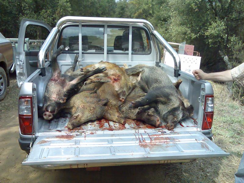 Eso es un coche bien cargado, si señor. Ya lo hemos hablado, debatido y nunca nos ponemos de acuerdo en los calibres. Ayer, sin ir mas lejos, gancho entre amigos, varios 30.06, 7 mm, y dos 338, pues bien los 30.06 tuvieron mala suerte y no dispararon, el 7 mm, se hartó (mató un cochinete). El 338 resopló dos veces, en una visto y no visto, pero cochino que al tiro hace algo raro, hay que ir a ver que ha ocurrido, poco mas abajo, no llegaba a 20 metros estaba con los jamones pasados.
