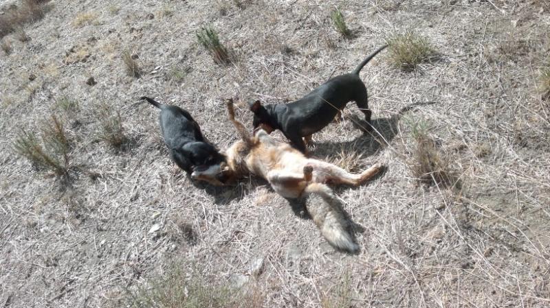 Esta cayó en madriguera con cartuchos del 12 en doble cero,después del trabajo de estas dos fieras (madre e hija) la madre una tekel pelo fino que es una maquina para todo e hija cruzada con jacterrier que es puro nervio y agilidad.