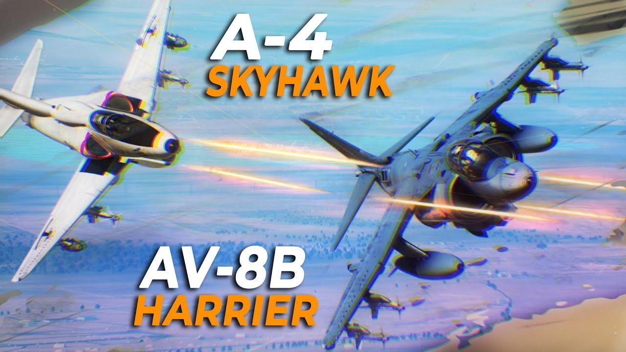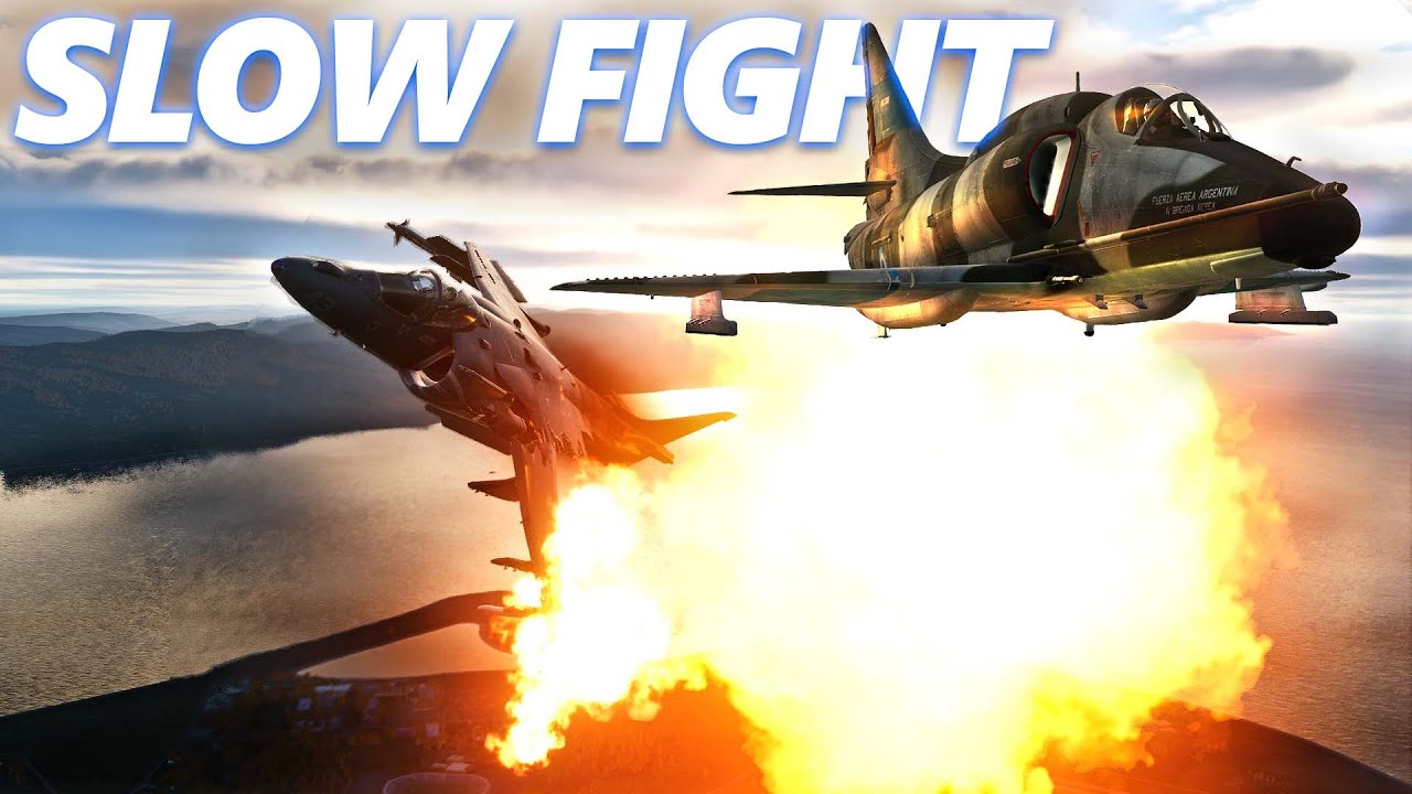 En esta otra simulación, en este caso el youtuber pilota el A-4, también se menciona la ventaja de la versión del Sidewinder que porta el Harrier respecto a la que porta el Skyhawk (de nuevo menciona AIM-9M y no L) y el Harrier utiliza sus toberas orientables para maniobrar, aunque en este caso juega a favor del A-4