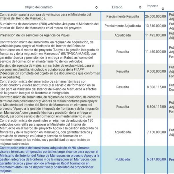Pinchar en el enlace y buscar en licitaciones y vereis lo que este chiringuito gasta para los amigos marroquies que no tienen recursos pero se compran el caza mas caro deo mundo... en fin, no tiene nombre muchas cosas