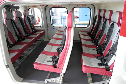 Si es ese modelo, la versión de transporte lleva 6 a 8 asientos para pasajeros en lujo, hay hasta 13 en "turista". Los pilotos van aparte, no se si hay tripulación de a bordo