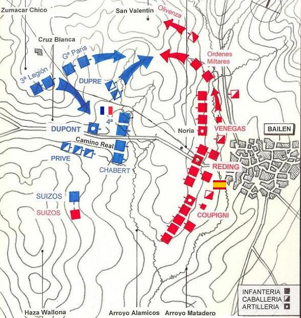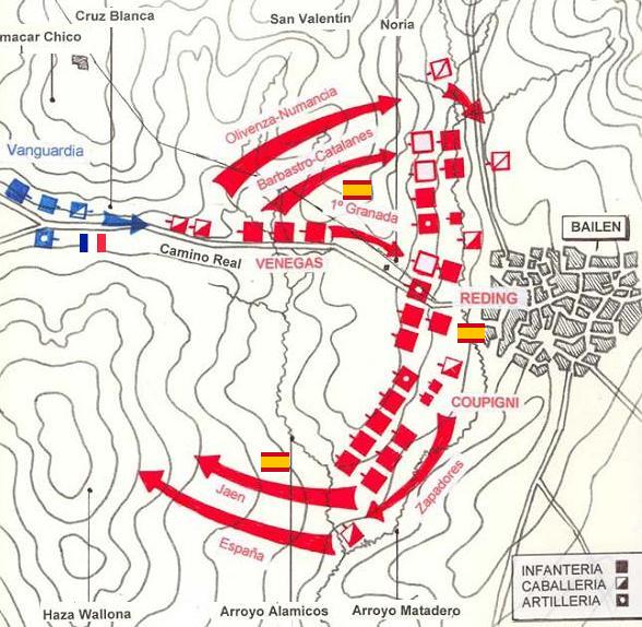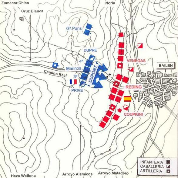Otro terreno que marco la diferencia fué Bailen en la 1ª derrota del 1º ejercito del mundo, hasta entonces invicto al mando del general invicto Dupont, colaboraron: el terreno, "la caló" de Julio (el calor en correcto español) y las "aguaoras" ( mujeres de la zona que llevaban el agua a sus maridos y primos mientras estos les daban para el pelo a los gabachos, que para su desgracia no tenían "aguoras".