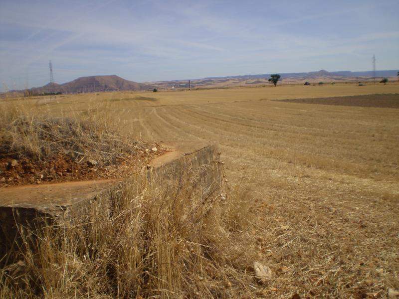 El cerro puntiagudo que se ve a la derecha de la foto es el pueblo de Hita , al fondo los llanos de la NII , en el centro Alarilla, a la izquierda el colmillo , esa es la línea principal , en los tres sitios están las trincheras del frente , en el colmillo hay un cuartel pequeño en tuneles (puesto de mando etc.)