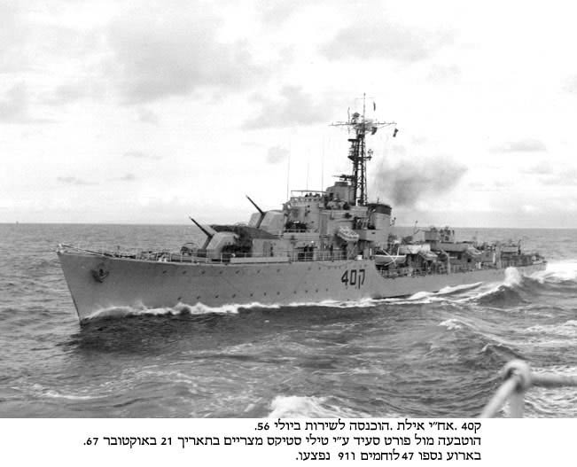 En 1955 fué vendido a Israel, y a lo largo de la Guerra de los Seis Días, fué atacado por patrulleras lanzamisiles egipcias, con misiles SS-N Styx soviéticos, que lo mandaron al carajo.