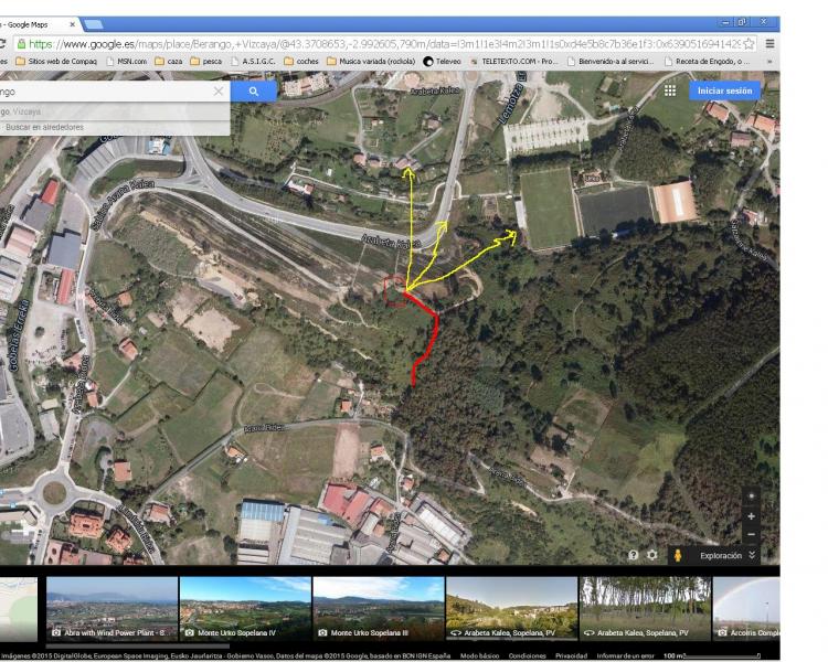 De momento si os quereis entretEner con google maps a ver si las encontrais, claro que las fotos de google la fisonomía del terreno ha cambiado mucho, cuelgo unos mapas y por referencias del campo de fútbol, el monte urko que está enfrente y la carretera pienso que está donde he marcado, si me equivoco me decís.