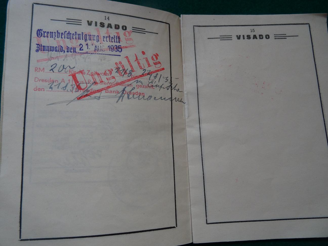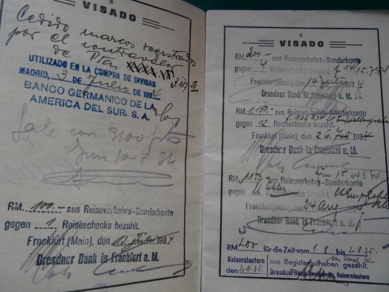 - El segundo es un pasaporte del año 1934 con varios sellos y visados alemanes, utilizado para compra de divisas.