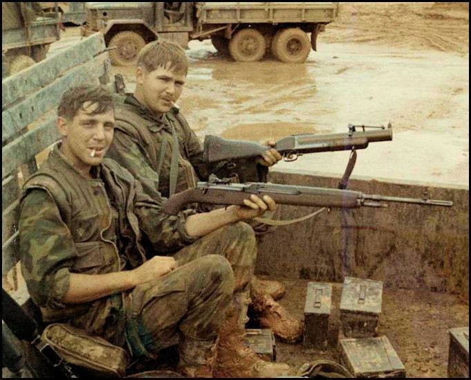 Mira, el soldado en segundo plano lleva un lanzagranadas M79, del que también se habla en el texto.