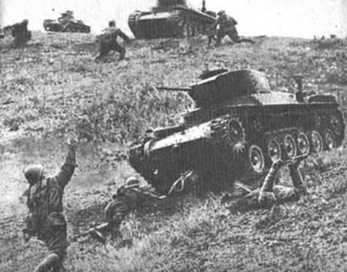 Por cierto, carros japoneses atacando tropas soviéticas en la isla de Shumshu, peeeeeeeero de una película rusa.
