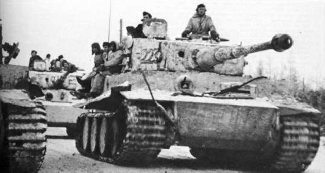 y uno de los motivos por lo que no hay que fiarse de algunas fotos a color antiguas...este Tiger I ultimo, aparece en al foto con un color gris claro (foto coloreada, no a color), jamas usado por los carros alemanes, y menos por estos Tiger, fabricados con posterioridad a 1943, año de implantacion del color arena oscuro....