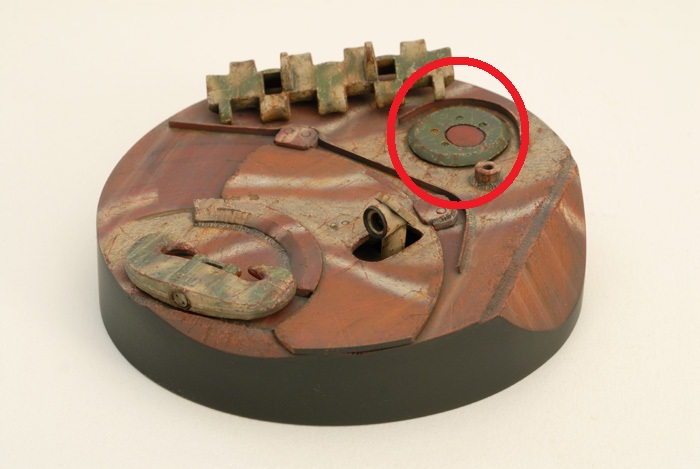 se suelda una guarda de proteccion para el anillo de la torre. esto impedia que proyectiles contracarro y fragmentos de proyectiles de artilleria bloqueasen la torre...en la foto, maqueta, los puntitos blancos...los de la torre, el dispositivo lanza artificios...