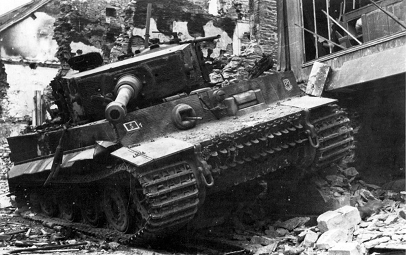 una foto de un Tiger I del Kampfgruppe Fehrman...estos carros son un claro ejemplo de la situacion de las fabricas alemanas de final de guerra...son carros con partes de una u otra version...un "mezcladillo"...habia que sacar lo que se pudiese...