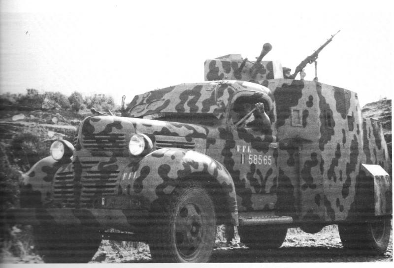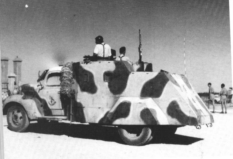 Sólo añadir que se hicieron de 20 a 30 unidades,las primeras con blindaje procedente de antiguas autoametralladoras White, sobre chasis Dodge comprados en Egipto,en el parque de automóviles de Beirut, combatieron contra los británicos.