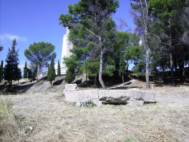 este muro que ahora sirve de contención para las tierras de la plataforma del monumento era un parapeto circular construido con los escombros del antiguo monumento que quedaron tras la voladura del mismo por los rojos.