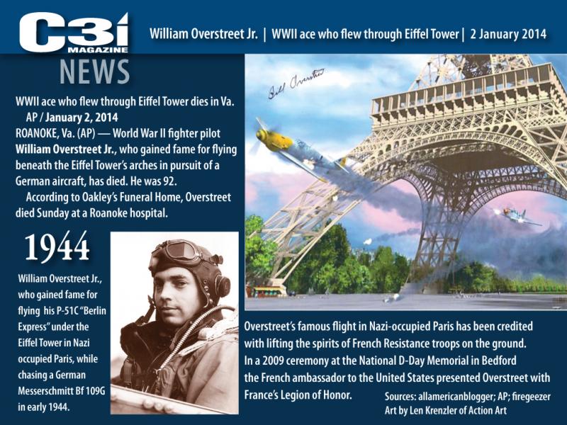 falleció no hace mucho. Fue el capitan William Overstreet. Perseguia a un Bf-109 y este para zafarse se le ocurre pasar por debajo de la torre, William le sigue y cose a balazos.