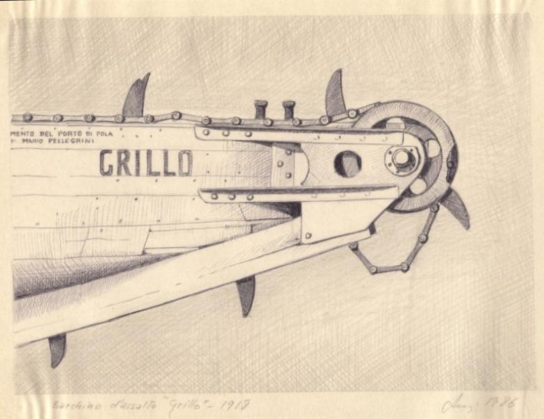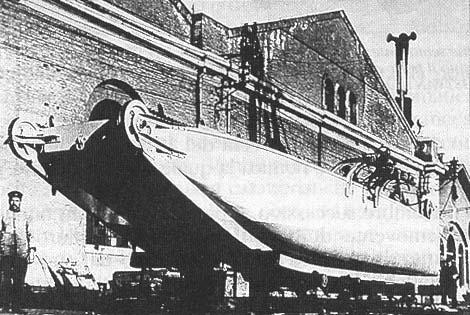 dame un momento para que localice el libro, pero creo que se trata de una lancha torpedera italiana, modificada para atacar los dreadnoughs austriacos en puerto, y para ello el curioso dispositivo para poder superar las redes antitorpedo y de cierre de las dársenas.