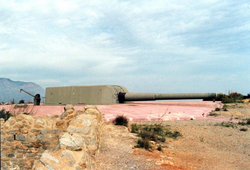 Para que no sigais yendo por los cerros de Seoll....digo de Ubeda...:D:D:D:D os voy a poner más fotos de los 381 mm esta vez de la batería de costa de Llucalary en Menorca, ya abandonada, para variar...:(1 También se ven los Vickers de 152 mm haciendo fuego real...