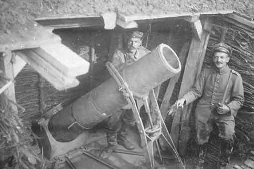 A pesar de su tosquedad, el arma (que apareció en 1915) todavía disparaba en 1918 aunque ya era catalogado como "mortero auxiliar".