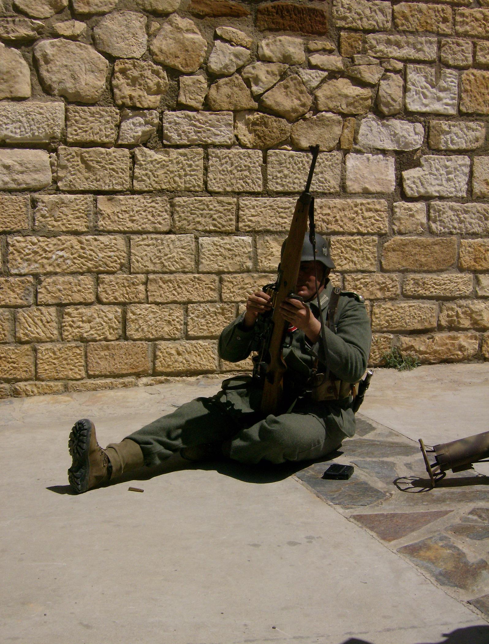 Los Mauser, Garand, Enfield, G-43 o MP-44 (en este caso BD-44) por ejemplo son armas en tiro con su correspondiente licencia de arma larga rallada, se usan con la autorización previa de la GC a la que la organización le envia un listado con todas las armas, en uso, inutilizadas o de réplica. Estas armas se usan en estos eventos con munición de fogueo y está totalmente prohibido portar munición real, de hecho la GC incluso inspeccionó algun cartucho que le pidió a algún participante. En el caso de las armas que son semiautomáticas (Garand, G-43 o BD-44), para que mantengan su funcionamiento con fogueo y no tener que cargar manualmente cada vez, se les pone una bocacha (en algunos sitios se les llama bocacha holywood) que reduce la salida de gases y permite que el arma recupere tras cada disparo con fogueo.