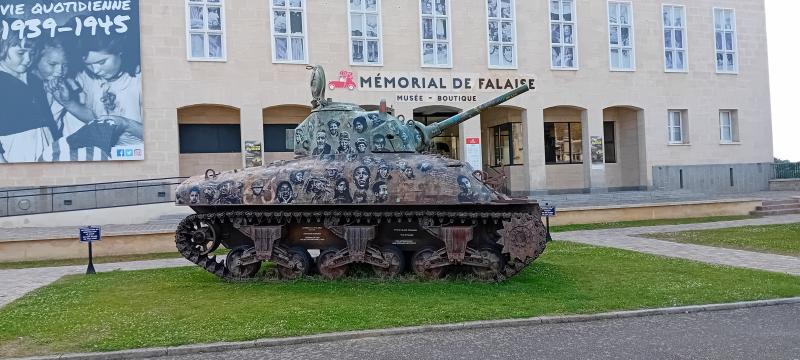 Nada más entrar en el bonito pueblo de Falaise te recibe este tanque, decorado a modo de monumento, junto al Museo.