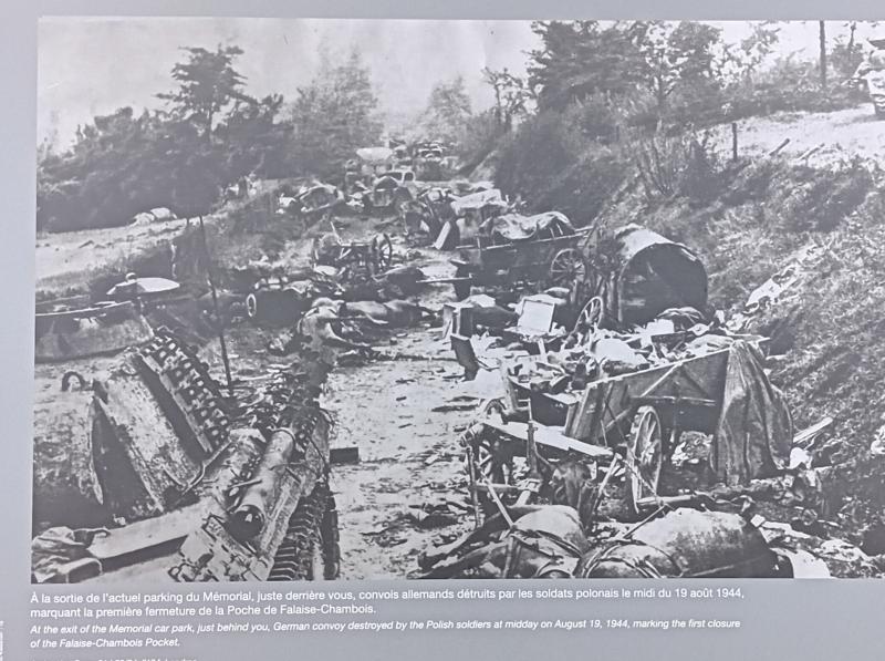 Continuamos ruta hacia Mont Ormel, donde se ubica un pequeño museo en la colina 262, donde se libró una batalla entre fuerzas polacas y alemanas entre el 19 y el 21 de agosto de 1944. Los alemanes intentaron tomar la cresta para abrir una vía de escape de la bolsa de Falaise. Los polacos lograron conservar la cresta a pesar de las pérdidas que sufrieron y de estar agotados y bajos de municiones. Los alemanes fueron derrotados finalmente tras un último intento de invadir la posición, y así quedó asegurada y cerrada la bolsa de Falaise, donde colapsó el Ejército alemán en Normandía.
