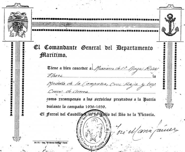 "...habiendo participado en todas las operaciones y hechos de armas en que intervino este buque como son las siguientes: Vigilancia del Estrecho. Colaboración con el Ejército en las costas de Málaga y ocupación de esta ciudad. Apresamiento de buques contrabandistas, combate con el buque artillado rojo "Cabo Santo Tomé” hundido por este cañonero . Bombardeo de las costas de Levante y operaciones preliminares para la toma de Barcelona y Tarragona, diversos combates con la aviación enemiga entre los que destaca el que tuvo lugar en las costas de Cataluña contra 20 aviones de los que dos de ellos fueron derribados por nuestras defensas antiaéreas. Vigilancia del Mediterráneo y el Goldo de Almería que terminó con la ocupación de dicha Plaza por este Cañonero"