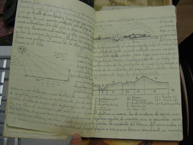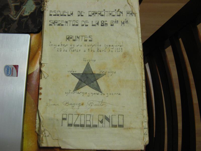 Os muestro una muestra de un librillo manuscrito por mi abuelo (93 años y aún vivo) a su paso por la escuela de sargentos de pozoblanco el año 1938 estando en el ejército republicano (por obligación, el no quería ir a la guerra).