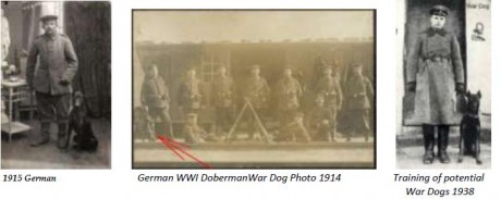 Pero sin embargo, la utilización de los perros en las guerras modernas no se llevó a cabo hasta la I GM, donde los alemanes utilizaron ejemplares de la recién creada raza Dobermann así como otros, los Rottwailer y los Ovejeros Alemanes.