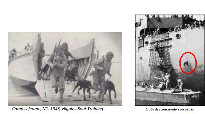 Es curioso apuntar, que la mayoría de ejemplares utilizados correspondían a la raza Dobermann, no muy conocida por otra parte en los años 30 y 40 del siglo pasado. Pero los Marines sí los conocían y tenían muy claro que perros querían llevarse al campo de batalla.