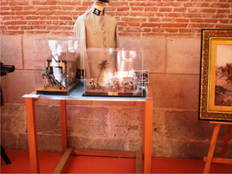 Dentro como podréis ver por las fotos, se colocaron una serie de paneles con letreros informativos, laminas, planos, cuadros de todo tipo, tanto de batallas como de caballeros y personajes ilustres que tenía que ver con la caballería, fotos, útiles de todo tipo, armas, uniformes, maquetas y figuras varias, y un sinfín de objetos que nos contaban tanto el desarrollo del caballo desde hace millones de años hasta nuestros días, sus razas, procedencias, tipos, variaciones físicas, y su empleo a lo largo de la historia.