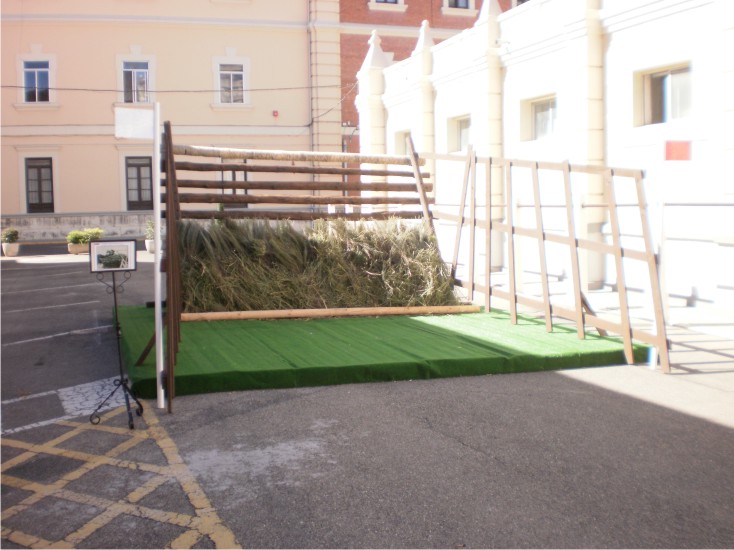 Una representación de un laboratorio de inseminacion y veterinaria, una forja de herrador con todos sus útiles, etc. También 5 preciosos ejemplares de 5 tipos diferentes de caballos, un fresón, un ingles, un árabe, y dos más que no recuerdo, obstáculos de salto.