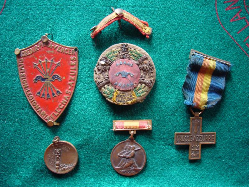La Cruz es conmemorativa italiana de los pertenecientes a esa unidad, así como la medalla suelta de abajo a la izquierda, que es la de los legionarios italianos en España.