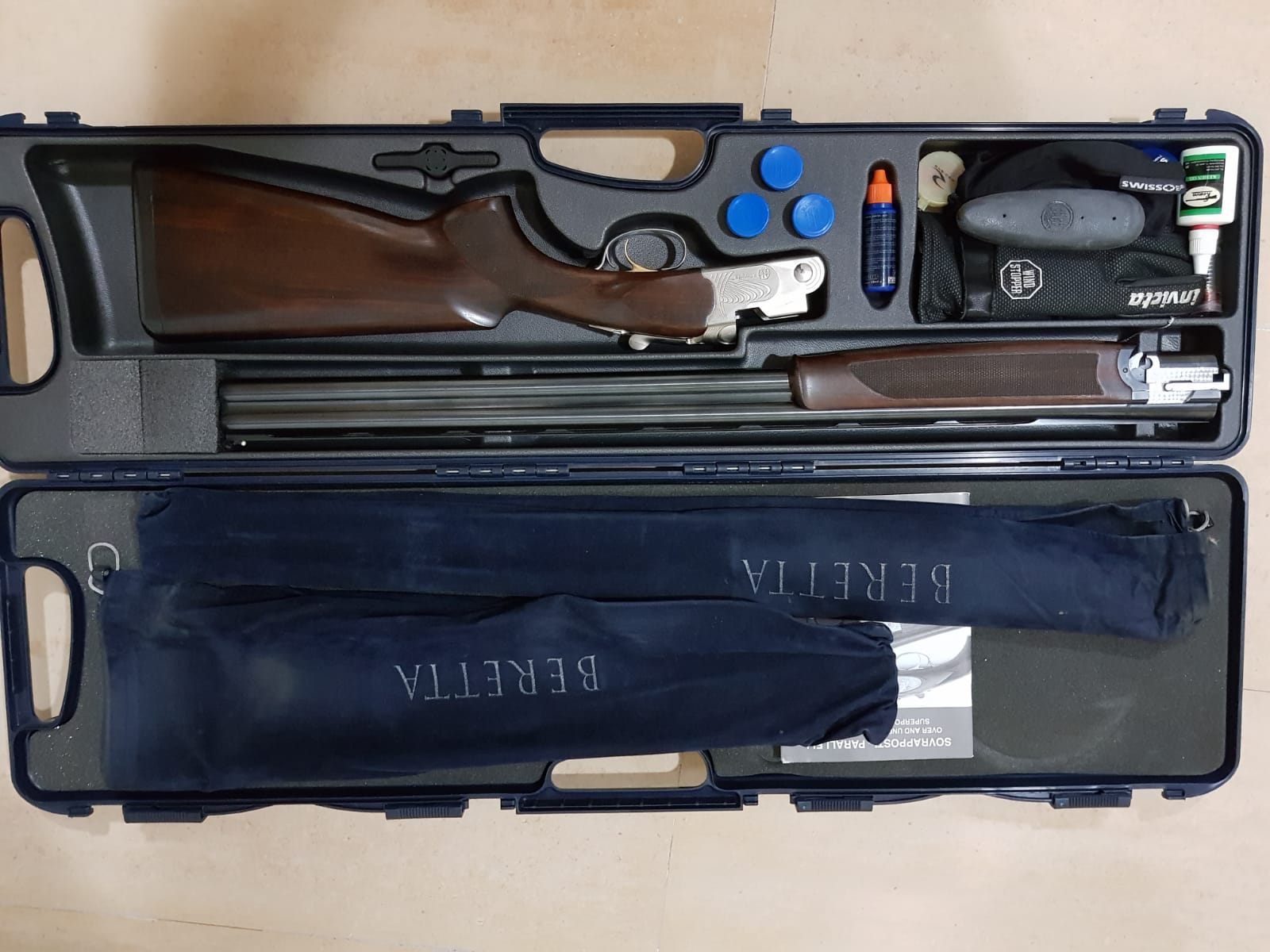 Estupenda escopeta Beretta superpuesta, usada solo en tiro al plato. Con su maletín original, muy cuidada, polichoques originales.